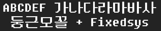 둥근모꼴+ Fixedsys 1.3 가나다라마바사아자차카타파하힣 ㄱㄲㄴㄷㄸㄹㅁㅂㅃㅅㅆㅇㅈㅉㅊㅋㅌㅍㅎㄳ ㅏㅐㅑㅒㅓㅔㅕㅖㅗㅘㅙㅚㅛㅝㅞㅟㅠㅡㅢㅣ ABCDEFGHIJKLMNOPQRSTUVWXYZ abcdefghijklmnopqrstuvwxyz 1234567