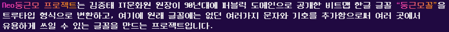 너무나도 유명하죠. 아마 한글 OFL 픽셀 폰트 중에서는 가장 유명한 폰트라 해도 이견이 없을 겁니다.